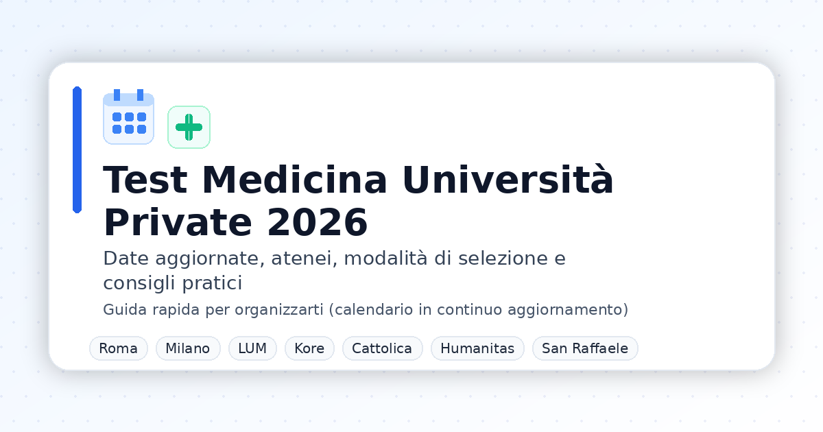 Guida pratica Test Professioni Sanitarie Cattolica 2025/2026: date, posti, costo, punteggio e iscrizione Se vuoi entrare in una Professione Sanitaria […]